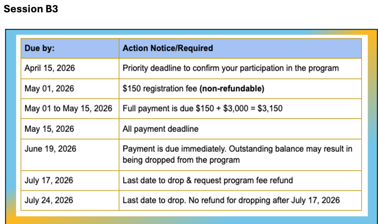 Course period: Session B3 from July 13, 2026 to July 31 2026