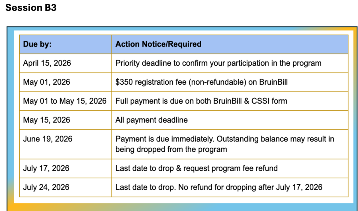 For Course Credit program – BruinBill fees breakdown, please visit https://summer.ucla.edu/fees-payment-and-financial-aid/